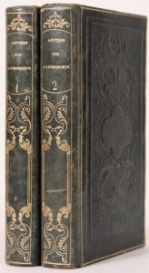 Lettres sur l'astronomie. Paris, Armand Aubrée, 1838. 2 volumes in-8, basane verte, plats ornés de décors frappés à froid, dos lisses ornés. (Reliure de l'époque). Troisième édition de cet ouvrage classique sur l'astronomie, illustrée de 2 planches dépliantes.