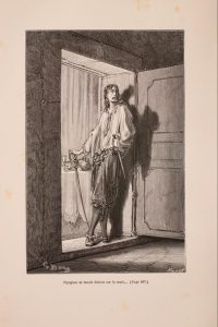 Le Capitaine Fracasse. Paris, Charpentier, 1866. Grand in-8, demi-chagrin rouge, dos orné (Reliure de l'époque). Premier tirage des 60 planches de Gustave Doré gravées sur bois.