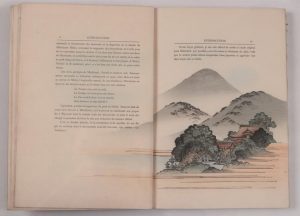 Scènes du théâtre japonais. L'École de village (Terakoya). Drame historique en un acte. Tokyo, T. Hasegawa, 1900. In-4, cartonnage illustré cousu à la japonaise (Reliure de l'éditeur). Traduction française par Karl Florenz du « drame le plus populaire du théâtre japonais » (introduction).