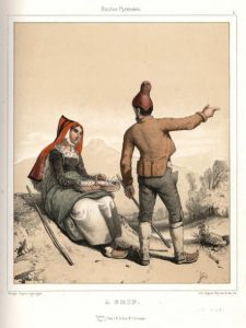 Le titre lithographié ouvrant le volume et son cartonnage d'éditeur appartiennent à une autre suite, celle des Costumes des Pyrénées par Édouard Pingret (Tarbes et Pau, J. M. Dufour, 1834).
