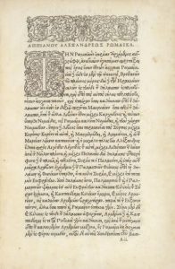 Édition princeps de l'Histoire romaine d'Appianus. Celle-ci, établie à partir de manuscrits de la Librairie royale, a été publiée par Charles Estienne qui termina l'entreprise débutée par son frère Robert.