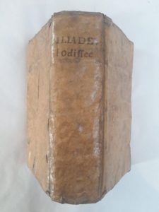 Les XXIIII livres de l'Iliade. Avec les trois premiers Livres de L'Odissee [sic]. Paris, Abel L'Angelier, 1599. 3 parties en un volume in-12, vélin à recouvrement, traces de lacets (Reliure de l'époque).