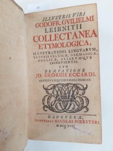 Édition originale, publiée un an après la mort de Leibniz par son confrère Johann Georg von Eckhart, linguiste et philosophe allemand.