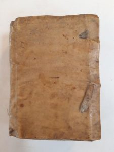 Titre en partie détaché, petite galerie de ver touchant parfois quelques lettres en bas des cahiers Qq et Rr, petit manque de papier angulaire au feuillet Ddd2. Feuillets X4-5 plus courts en pied. Les feuillets non chiffrés reliés entre les pp. 148-149 sont déboités. Quelques rousseurs et mouillures. Reliure pratiquement désolidarisée du livre.