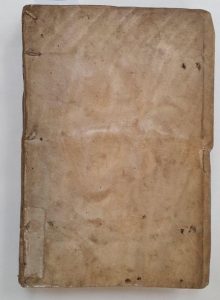 Large mouillure rousse aux cahiers g et h, mouillure claire à plusieurs cahiers. Travail de ver dans le blanc du titre, sans gravité. Traces d'une ancienne étiquette de cote en bas du dos.