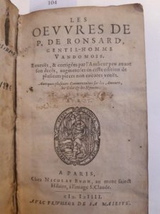 RONSARD (Pierre de). Les Œuvres. Paris, Nicolas Buon, 1604. In-12, vélin à recouvrement, restes de lacets (Reliure de …