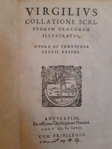 Premier ouvrage de l'humaniste Fulvio Orsini (1529-1600), philologue, antiquaire et bibliothécaire de la bibliothèque Farnèse. Dédié au cardinal de Granvelle, dont l'auteur fut proche, il complète l'édition plantinienne du Virgile de 1566 dans la traduction de Paul Manuce (cf. Ruelens & De Backer, pp. 67-68).