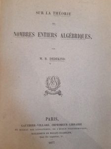 Sur la théorie des nombres entiers algébriques. Paris, Gauthier-Villars, 1877. In-8, bradel demi-percaline avec coins, titre au dos (Reliure de l'époque).