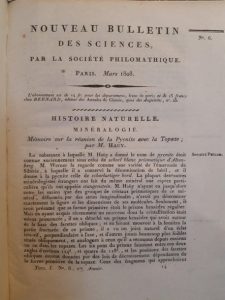 - [POISSON (Siméon Denis)]. «Mémoire sur la propagation de la Chaleur dans les corps solides». In : Nouveau bulletin des sciences, par la Société philomathique, mars 1808, n°6, pp. 112-116. Paris, mars 1808. Plaquette in-4, bradel cartonnage de papier marbré, pièce de titre en long au dos (Reliure moderne).
