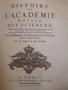 HISTOIRE DE L'ACADÉMIE ROYALE DES SCIENCES. Années 1779-1781-1785. Paris, De l'Imprimerie royale, 1782-1784-1788. 3 forts volumes in-4, cartonnage d'attente papier marbré, non rogné (Reliure de l'époque).
