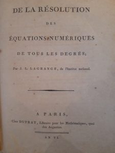 De la résolution des équations numériques de tous les degrés. Paris, Duprat, An VI (1798). In-4, vélin rigide, filets au dos et pièce de titre de maroquin rouge, tranches lisses (Reliure de l'époque).