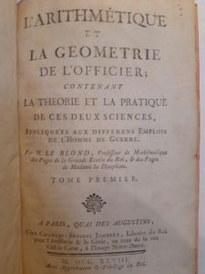 L'Arithmétique et la géométrie de l'officier. Paris, Charles-Antoine Jombert, 1748. 2 volumes in-8, veau marbré, dos orné, pièce de titre fauve, tranches rouges (Reliure de l'époque).
