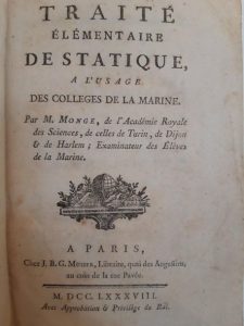 MONGE (Gaspard). Traité élémentaire de statique, à l'usage des collèges de marine. Paris, Musier, 1788. In-8, …