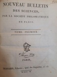 La livraison de mars 1809 (tome I, pp. 298-301) contient le rapport du très important mémoire de Gay-Lussac (1778-1850) sur sa loi de combinaison des gaz, présenté à la Société philomatique de Paris le 31 décembre 1808 : M. Gay-Lussac a pour principal objet dans ce Mémoire de prouver que les gaz se combinent entre eux, en volume, dans des rapports très-simples. Cette loi fondamentale servira à la théorie atomique.