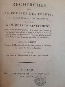 PRONY (Gaspard de). Recherches sur la poussée des terres, et sur la forme et les dimensions à donner aux murs de …