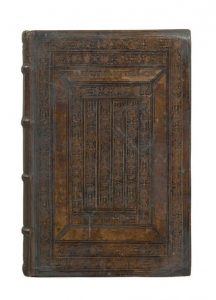 Peri optikes [en grec], id est de natura, ratione, & proiectione radiorum visus, luminum, colorum atque formarum, quam vulgo Perspectivam vocant, libri X. Nuremberg, Johannes Petri, 1535. In-folio, veau fauve estampé à froid, encadrement et panneau central dessiné par des jeux de filets et des roulettes, titre en capitales sur le premier plat, dos orné (Reliure de l'époque).