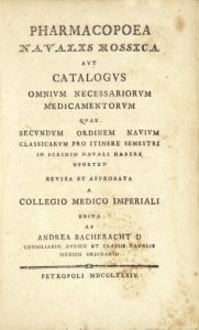 BAKHERAKHT (Andrei). Pharmacopoea navalis rossica. Aut catalogus omnium necessariorum medicamentorum [...]. Petropoli …