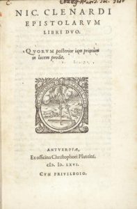 CLÉNARD (Nicolas). Epistolarum libri duo. Anvers, Christophe Plantin, 1566. 2 parties en un volume in-8, veau blond, …