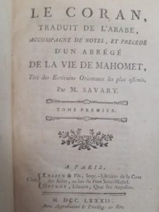 Traduction française du Coran par Savary. Cette version du texte coranique, la seconde en langue française, se révéla supérieure à celle donnée par André du Ryer dès 1647.