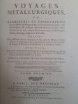 Voyages métallurgiques, ou Recherches et observations sur les Mines & Forges de fer, la Fabrication de l'acier, celle du fer-blanc, & plusieurs mines de charbon de terre, faites depuis l'année 1757 jusques & compris 1769. Paris, Cellot, Jombert, 1774-1780-1781. 3 volumes in-4, basane marbrée, dos orné, pièces de titre rouge et de tomaison verte (Reliure de l'époque).