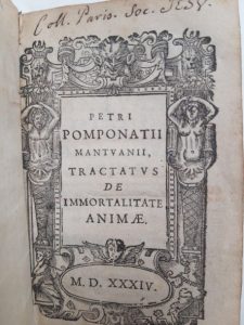 Dans son ouvrage, initialement paru en 1516, l'auteur compare les deux théories qui s'opposent sur le sujet brûlant de la mortalité ou non de l'âme humaine. En se rangeant du côté d'Aristote, il provoqua les foudres de l'Église qui condamna son livre, le brûla en place publique par les inquisiteurs à Venise et le proscrit du Concile de Trente (cf. Peignot, Dictionnaire des principaux livres condamnés au feu, t. II, pp. 49-50).