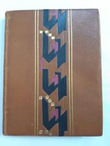 Les Incompris charlatanesques. Paris, Maison d'art et d'édition, 1919. In-12, maroquin fauve mosaïqué, bande centrale de pièces géométriques noir et or, lie de vin, dos titré en long (Marguerite Moion).