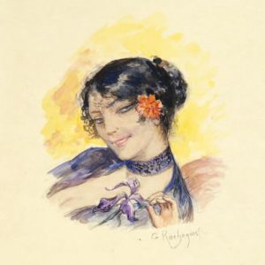 Un des 80 exemplaires de tête sur japon impérial, comportant trois états des eaux-fortes dont l'eau-forte pure. L'exemplaire est enrichi d'une aquarelle originale signée de Rochegrosse reprenant le motif de la couverture.