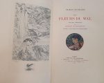 Les Fleurs du Mal. Paris, Librairie des Amateurs, Ferroud, 1910. In-4, maroquin framboise, triple filet doré gras et maigre sur les plats et le dos, doublure de même maroquin, gardes de moire, tête dorée, couverture et dos (Bernasconi).