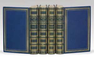 Œuvres complètes. 2 volumes. - Dernières chanson. Un volume. Paris, Perrotin, 1847. - Ma biographie. Paris, Perrotin, 1857. Un volume. Ensemble 4 volumes in-8, maroquin bleu, jeu de filets en encadrement et au dos, dentelle intérieure, couverture et dos, chemise, étui (Mercier sr de Cuzin).