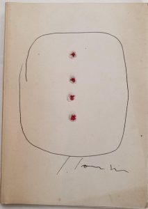 Concetto spaziale de Fontana sur la chemise couverture percée de trous. Chaque trou de chaque exemplaire a été réalisé par Fontana lui-même.