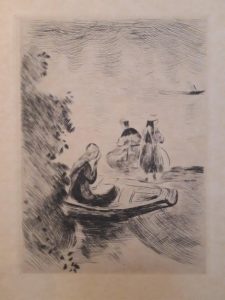 Poésies. [Paris], Les Cent une, 1931. In-4, en feuilles, chemise, étui illustré d'un éventail par Marie-Jeanne Maudot. 6 dessins de Berthe Morisot interprétés à la pointe sèche par Galanis.