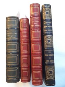 VOYAGES. - WHYMPER. Voyages et aventures dans l'Alaska (ancienne Amérique russe). Paris, Hachette et Cie, 1871. - WHYMPER. Escalades dans les Alpes de 1860 à 1869. Paris, Hachette et Cie, 1873. - VERNE (Jules). Les Grands navigateurs du XVIIIe siècle. Paris, Hetzel, s.d. - LIVINGSTONE. Explorations dans l'intérieur de l'Afrique australe et Voyages à travers le continent. Paris, Hachette et Cie, 1859. Ensemble 4 ouvrages en 4 volumes in-8 et grand in-8, demi-chagrin (Reliures du XIXe siècle).