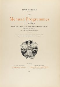 .1898.. LIBRO: .(ARTE).. .LES MENUS & PROGRAMMES ILLUSTRÉS. Invitations, billets de faire part, cartes d´adresse, petites estampes du XVII siècle jusqu´à nos jours.. Paris: Libr. G. Boudet et Ch. Tallandier, 1898. Folio menor. VIII + 402 p. + 1...