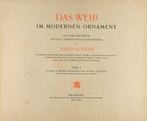 .1900 ca.. LIBRO: .(ARTE-MODERNISMO).. .KLINGER, JULIUS:. .DAS WEIB IM MODERNEN ORNAMENT... entwürfe für dekorationsmalereien, plakate, dessins, illustrationen, vignetten papierausstattungen, tapeten, keramiken, metall.... New York: Paul Wenzel,...