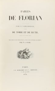 .1842.. LIBRO: .(BIBLIOFILIA-ILUSTR.).. .FLORIAN, JEAN-PIERRE CLARIS DE; STAHL, PIERRE JULES; GRANDVILLE [Ilustr.]:. .FABLES DE FLORIAN SUIVIES DE TOBIE ET DE RUTH.. Paris: Dubochet et Cie., 1842. 4º. 292 p. Profus. ilustr. por GRANDVILLE. Enc. en...