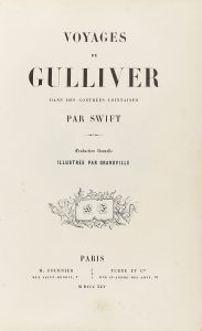 .1845.. LIBRO: .(BIBLIOFILIA-ILUSTR.).. .SWIFT; GRANDVILLE [Ilustr.]:. .VOYAGES DE GULLIVER dans des contrées lointaines par.... Paris: H- Fournier, 1845. 4º menor. XXXII + 450 p. Profus. ilustr. por GRANDVILLE. Pequeños puntos de óxido. Enc. de...