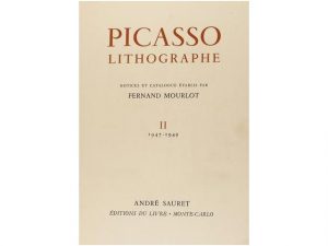 1950 ca. (BIBLIOFILIA). PICASSO LITHOGRAPHE. NOTICES ET CATALOGUE ETABLIS PAR FERNAND MOURLOT. II. 1947-1949. Monte-Carlo: Edts. du livre-Andre Sauret, s.a. Folio. 208 p., 1 h. Abund. ilustr. en texo y 2 litografías en negro, con pequenas pérdidas...