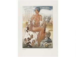 2011. (BIBLIOFILIA). ARMINO, MAURO; PERELLON, CELEDONIO [aguafuertes]: LES MUSES. Pamplona: Liober Ed., 2011. Folio mayor. Aguafuertes a color. Ejemplar en rama presentado en un estuche de piel. Edición numerada con acta notarial y limitada a 275...