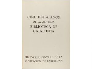 1968. (CATALUNYA). CINCUENTA ANOS DE LA ANTIGUA BIBLIOTECA DE CATALUNYA. Barcelona: Biblioteca Central de la Diputación de Barcelona, 1968. Folio menor. 226 paginas, 2 hojas. Encuadernado en plena piel, con nervios y escudo de Cataluna entre ellos....