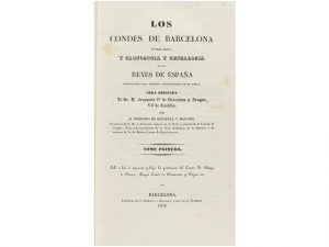 1836. (BARCELONA). BOFARULL MASCARO, PROSPERO DE: LOS CONDES DE BARCELONA VINDICADOS, Y CRONOLOGIA Y GENEALOGIA DE LOS REYES DE ESPANA considerados como soberanos independientes de su marca. Barcelona: Imp. de J. Oliveres y Monmany, 1836. 2 vols. en...