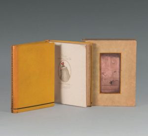 Muran. Paris, 1926. 2 volumes petit in-4°, maroquin citron, filet doré et listel mosaïqué ornant le pied des plats, dos lisse orné de même, titre en long, tranches dorées sur témoins, doublure et gardes de chamois souris, couverture illustrée en couleurs conservée, étui commun (Creuzevault).