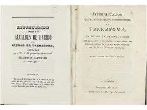 1843. (TARRAGONA). INSTRUCCION PARA LOS ALCALDES DE BARRIO DE LA CIUDAD DE TARRAGONA, ... Tarragona: Ayuntamiento Constitucional, 7 de Marzo de 1843. 8°. 11 p. Rústica. [Mas:] REPRESENTACION QUE EL AYUNTAMIENTO CONSTITUCIONAL DE TARRAGONA, HA HECHO...
