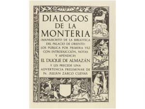 1935. (CAZA). ALMAZAN, DUQUE DE: DIALOGOS DE LA MONTERIA. (manuscrito de la Biblioteca del Palacio de Oriente). Los publica por primera vez con introducción, notas y apéndices el (...) y les precede una Advertencia preliminar de Fr. Julian Zarco...