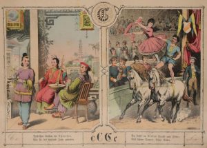 Pracht ABC Bilderbuch. Stuttgart, G. Weise, s.d. [vers 1900]. In-4 oblong, couverture illustrée, dos vert, étui (Cartonnage moderne avec la couverture d'origine). Charmant abécédaire orné de 48 illustrations en couleurs montées sur onglets.