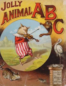 JOLLY ANIMAL ABC. New York, McLoughlin, 1888. In-4, broché. Amusant abécédaire richement illustré …