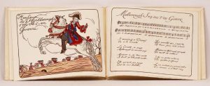 12 chansons tirées des recueils anciens. Paris, Martine, s.d. In-4 oblong, cartonnage illustré. 12 compositions à pleine page et une sur la couverture, coloriées au pochoir.