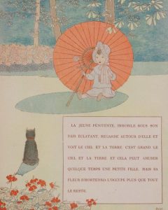 LA FONTAINE (Jean de). Fables choisies pour les enfants. Paris, Plon, s.d. In-4 oblong, toile rose fleurie de l'éditeur, illustration dorée sur le plat supérieur, tranches bleues. Illustrations en couleurs. Sans la jaquette.