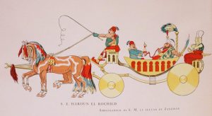 Les Courses dans l'Antiquité. Paris, E. Plon, Nourrit & Cie, s.d. In-8 oblong, toile jaune illustrée, tranches rouges (A. Lenègre). Ouvrage orné de 64 planches en couleurs de Caran d'Ache.