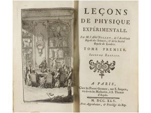 1745-1764. (CIENCIAS). NOLLET: LEÇONS DE PHYSIQUE EXPERIMENTALE. Paris: chez les freres Guerin, 1745-1764. 5 vols. (de 6). I: LVIII + 379 p.; III: 512 p.; IV: 535 p.; V: VI + 592 p.; VI: IV + 524 p. Lams. Enc. en plena piel, nervios, doble tejuelo,...