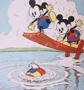Donald Duck. New York, Grosset and Dunlap, 1936. In-4, cartonnage illustré de l'éditeur. Édition originale de ces aventures de Donald Duck, illustrée en couleurs par les studios Disney.